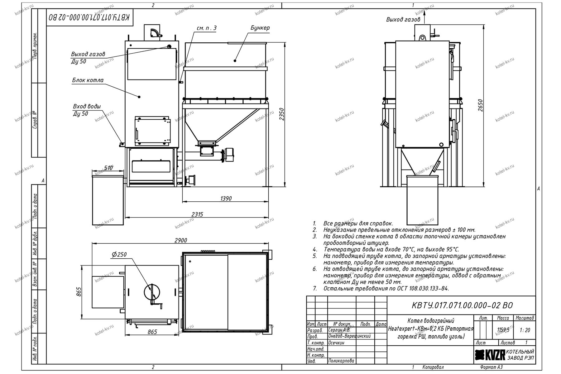 Конструкция автоматического котла на угле 0.2 МВт